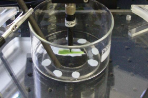 將葉子從植物上取下,用藍(lán)丁寶貼固定在玻璃盤中,底部朝上。玻璃盤替換了Tricell(電解池)的主體,以使樣品水平,如圖4所示。