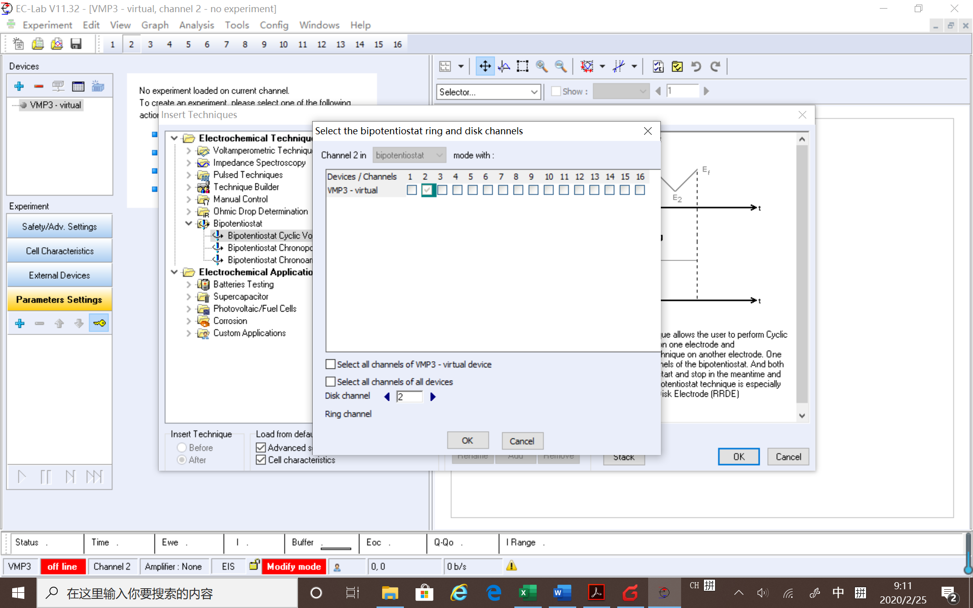 選擇所需的測試技術,彈出如下窗口,選擇測試所用的通道序號。(下圖中為選擇2和5兩個通道進行測試。)