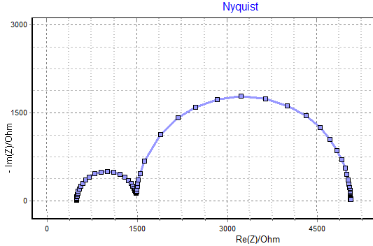 如儀器功能正常將會得到雙圓弧的Nyquist圖結果:
