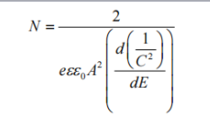 在這種情況下,斜率(通過線性擬合確定)為3.53 x 1015 F/V,因此摻雜濃度為1.64 x 1014 cm-3。該值與之前給出的值一致。