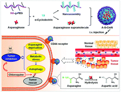 高效并安全遞送酶制劑是腫瘤治療成功的關鍵。文章報道了一種基于模擬細胞膜的納米載體(CmN)和超分子技術(SmT)的靶向酶傳遞系統。具體來說,每個CmN都有一個支架,主要由CD44靶向內源性成分與聚乙二醇2000(HA-g-PEG)結合,與α-環糊精(ACD)自組裝而成。CmN作為一個具有內部中空空間的微生物反應器,能夠將大分子天門冬酰胺酶(Asp)限制在Asp/ACD超分子復合物的內部區域。由于超分子復合物和納米囊泡的雙重保護作用,CD44靶向歸巢能力,HA-g-PEG的長效作用,與游離Asp相比,載于CmN的超分子Asp(A-S-CmN)具有優越的穩定性、動力學性質、催化活性和抗腫瘤作用,構建的超分子CmN具有良好的內部微環境。A-S-CmN的體內毒性和免疫原性也有所降低。CmN與表面貼裝療法相結合易于實施和擴展,可用于各種酶的遞送和多種癌癥治療。