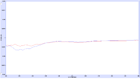圖5:純L-丙氨酸(藍(lán)線)和未知混合物C(紅線)的圓二色光譜